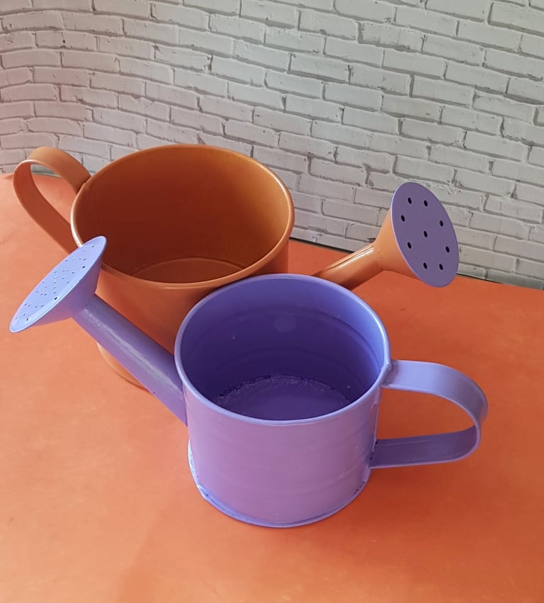 Deux petits arrosoirs peints et collés ensemble.